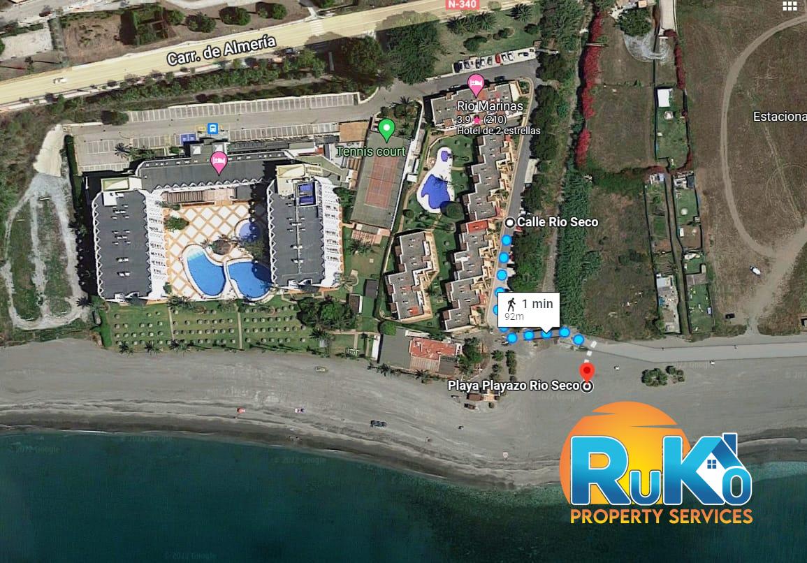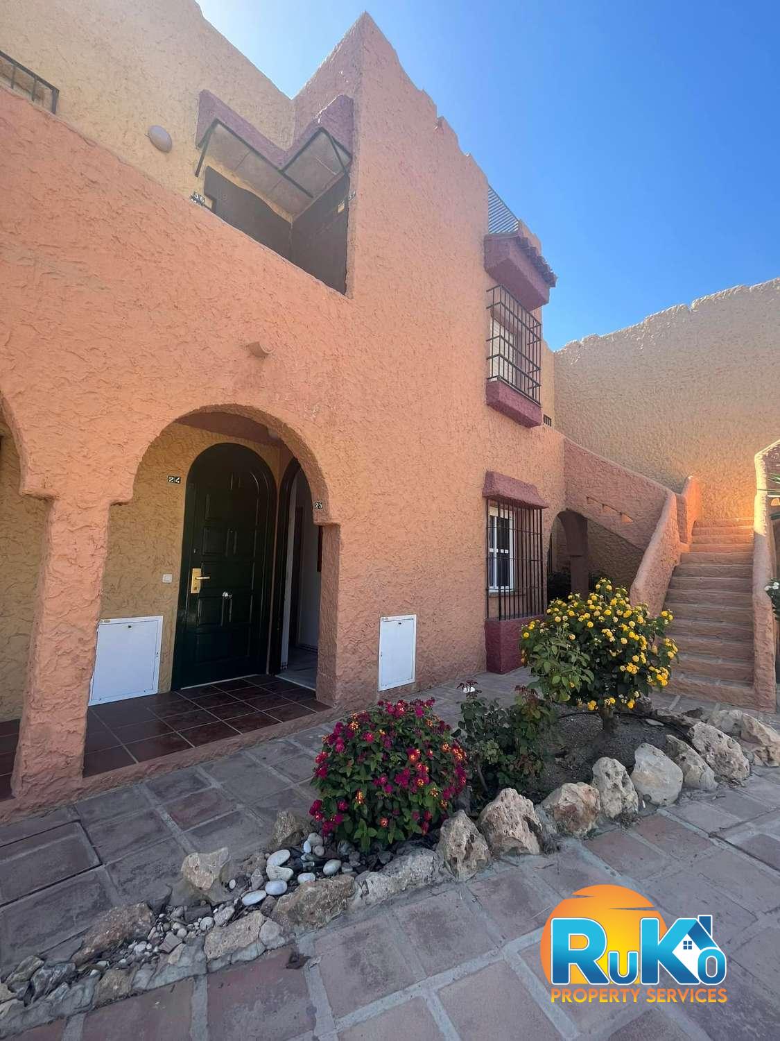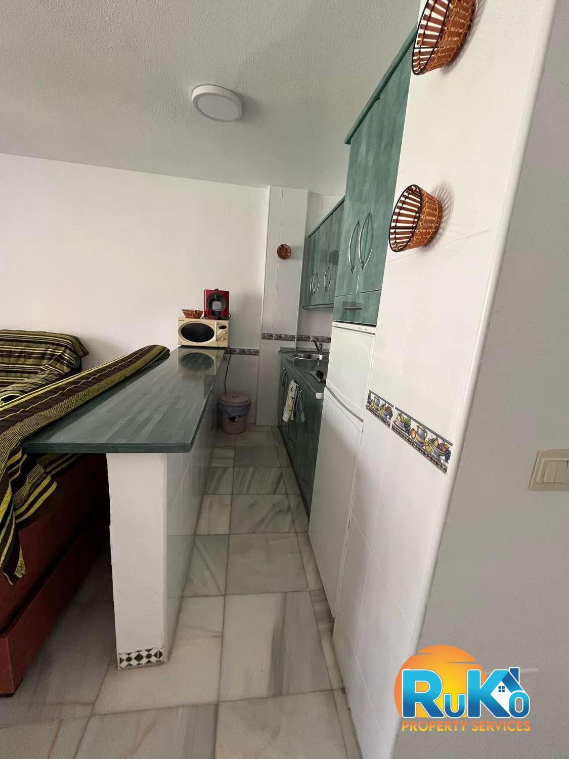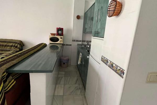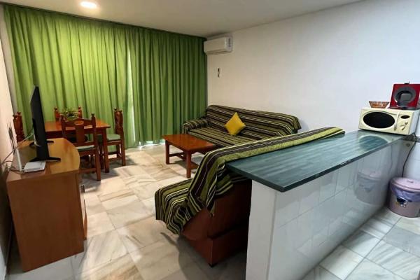 Apartamento en planta baja, consta de un dormitorio y dos sofás camas, capacidad para 4 o 5 personas, cocina con barra americana, pequeña terraza que da directamente a zonas verdes y piscina comunitaria, tiene aire acondicionado en el solón y wiffi. A 1 minuto de la playa el playazo