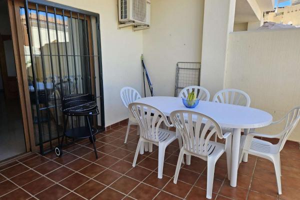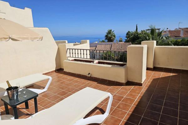 La terraza de la planta baja está parcialmente cubierta y equipada con barbacoa, mientras que la terraza de la tercera planta funciona como solárium con sombrilla. También podéis disfrutar del jardín y de la piscina comunitaria al aire libre, abierta todo el año. La propiedad ofrece vistas al mar para que las apreciéis. Aparcamiento en garaje comunitario.