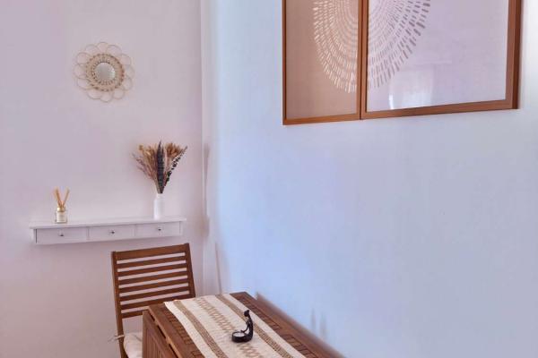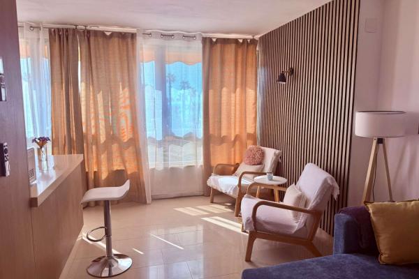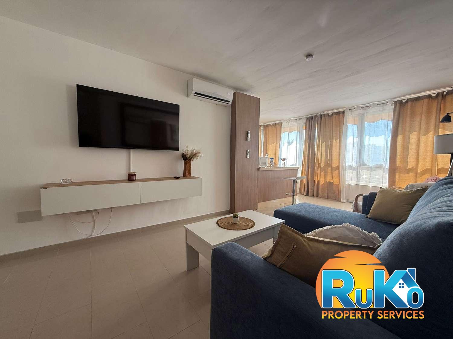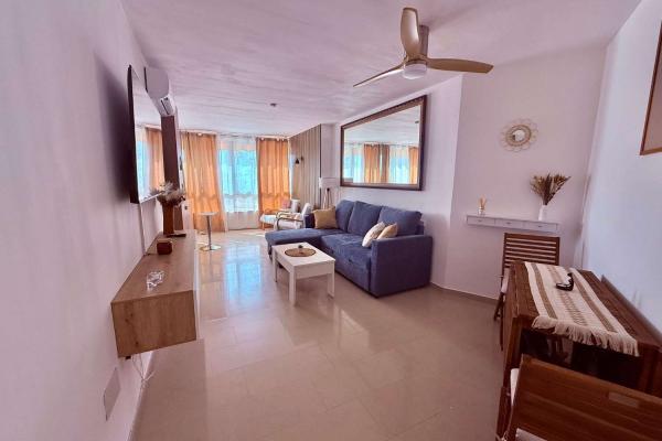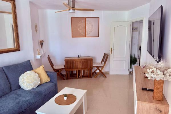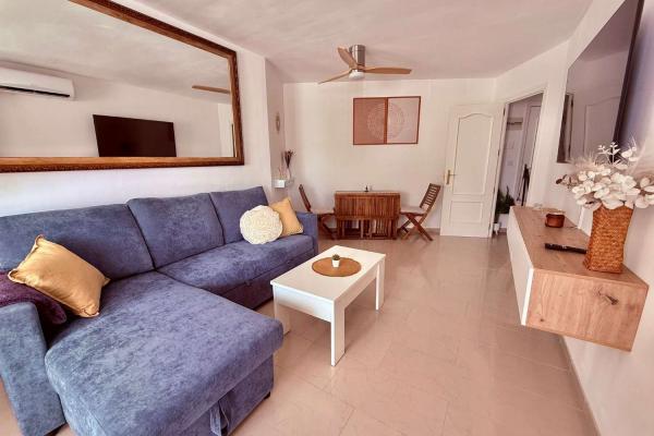 Apartamento de un dormitorio (capacidad para 4 personas), esta en una segunda planta, dispone de salón con sofá cama, cocina equipada con barra americana, baño con plato de ducha, aire acondicionado, wifi y piscina comunitaria. A 1 minuto de la playa.