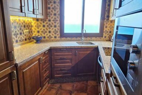 Consta de planta baja y dos plantas, en la planta baja tenemos un recibidor, salón con sofás, el salón da a un jardín de invierno acristalado con correderas y vistas al mar y cocina totalmente equipada, en la segunda planta nos encontramos con dos dormitorios con camas dobles y sus propios baños, en la tercera planta esta el tercer dormitorio con camas dobles y un baño.